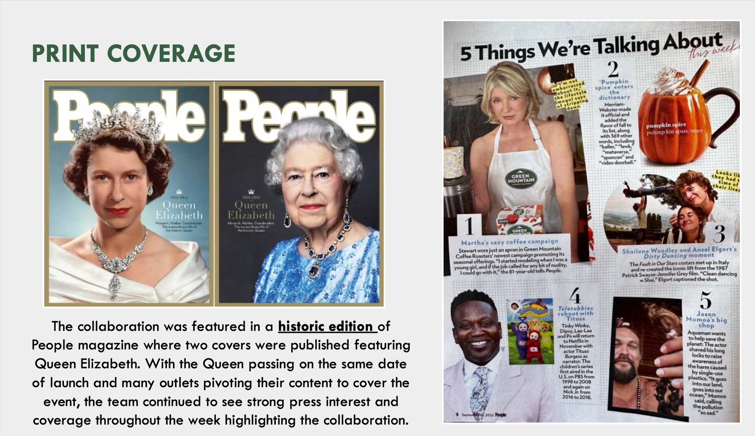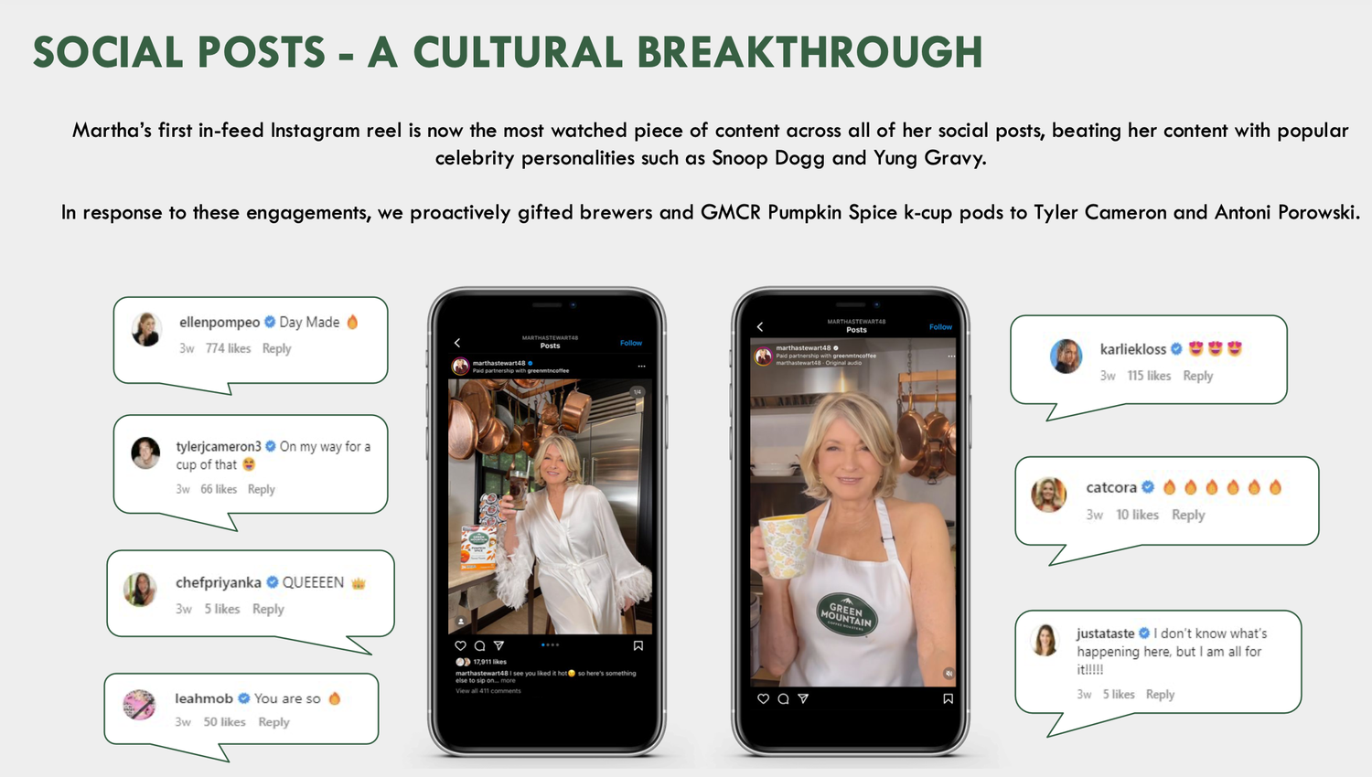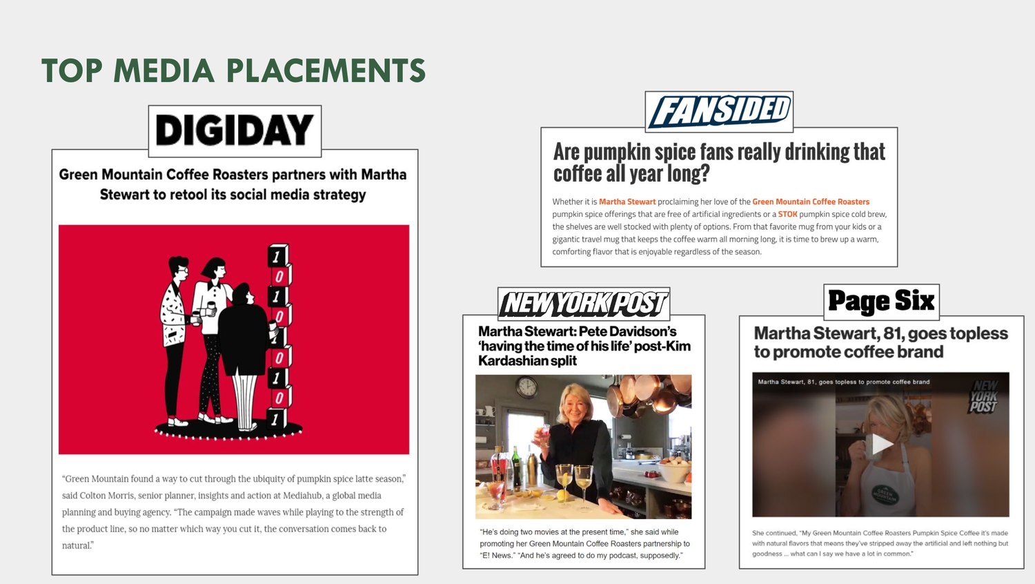 A project of a lifetime! And award winning as well. We shot and launched a social video with the legendary Martha Stewart where she is wearing nothing but an apron. Why? Because the coffee she is drinking Green Mountain Coffee Roasters striped away all the artificial flavors, leaving nothing but the goodness. So we did the same, or at least Martha did.